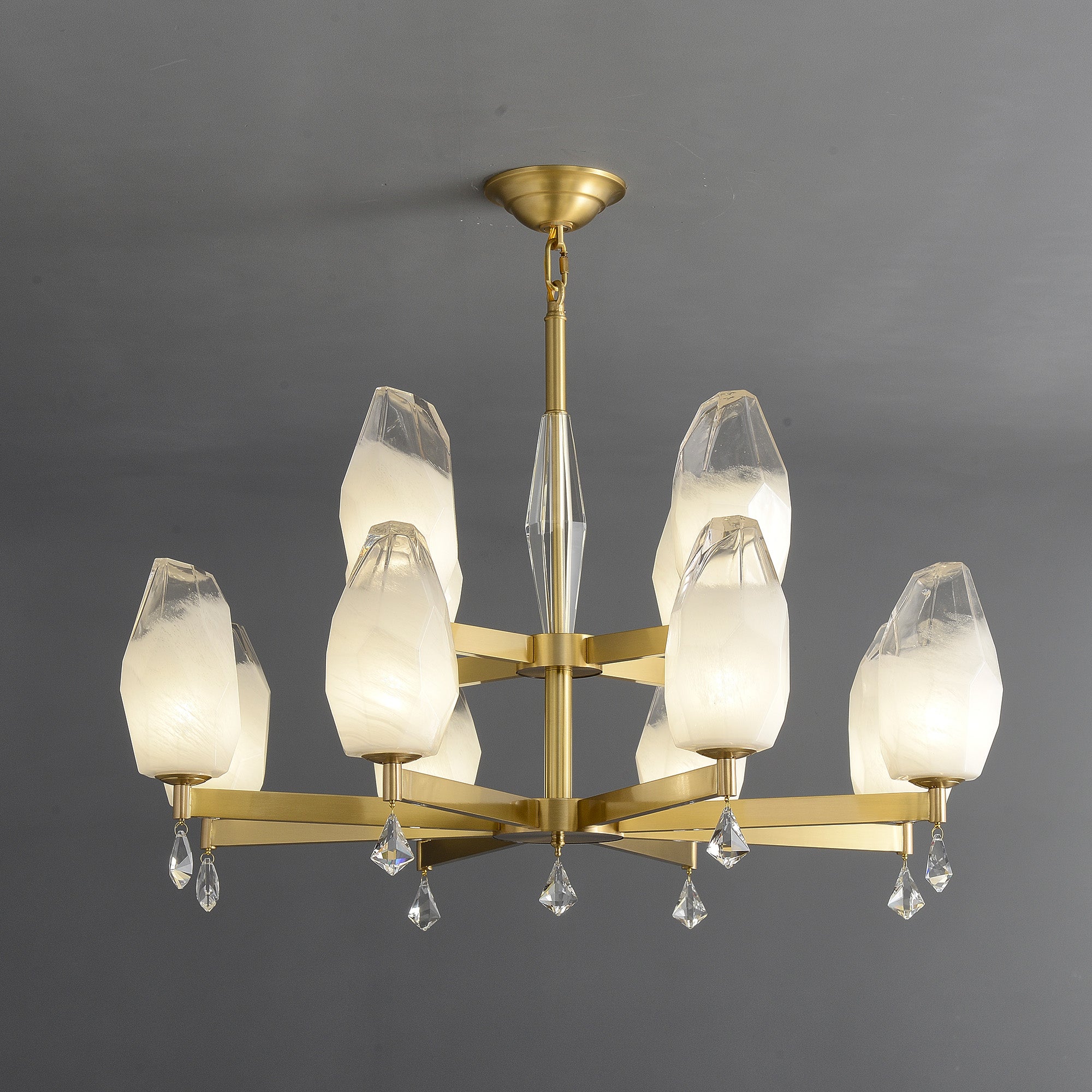 Daming XL Modern Chandelier (Antique Brass & Frosted Glass Finish)