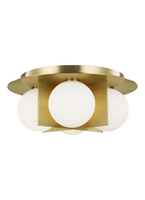 The Orbel Collection by Sean Lavin for Tech Lighting is inspired by Mid-Century modern art with contrasting geometric shapes. The Orbel Flush Mount features a circular canopy that supports alternating metal squares and four frosted spheres of light. Designed with a 15" diameter, the Orbel Flush Mount is available in modern finishes. Coordinate your design with other fixtures in the Orbel Collection, such as the Wall Sconce, Bath Light and Pendants. Lamping options are compatible with most dimmers. Refer to the Dimming Chart for more information.