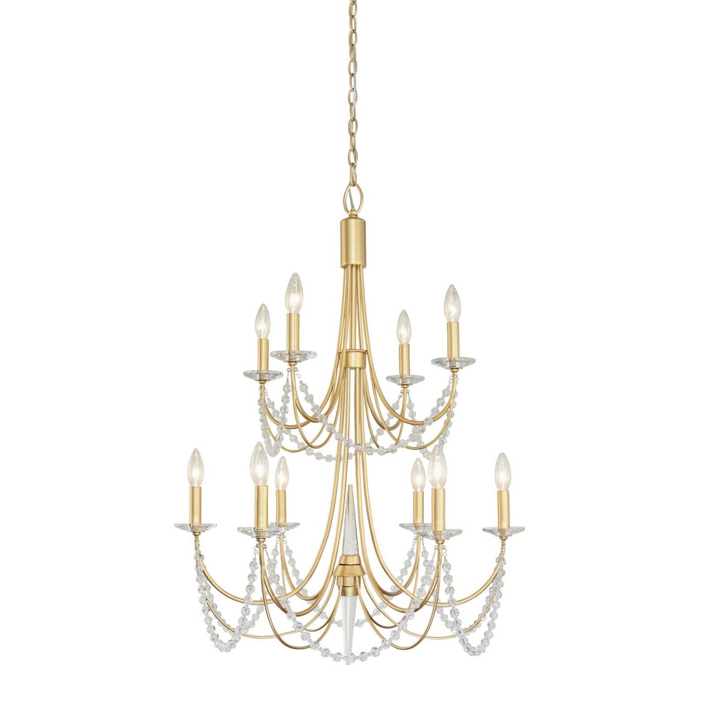 Romantic elegance and understated glamour shine through the Brentwood Collection. Whether adorning an entryway or suspended in a dining room, the blend of candle-like warmth with crystal spears, bobeches and draping whispers kisses of light. Brentwood brings the opulence of old Hollywood to your space with casual, yet elegant, sophistication.