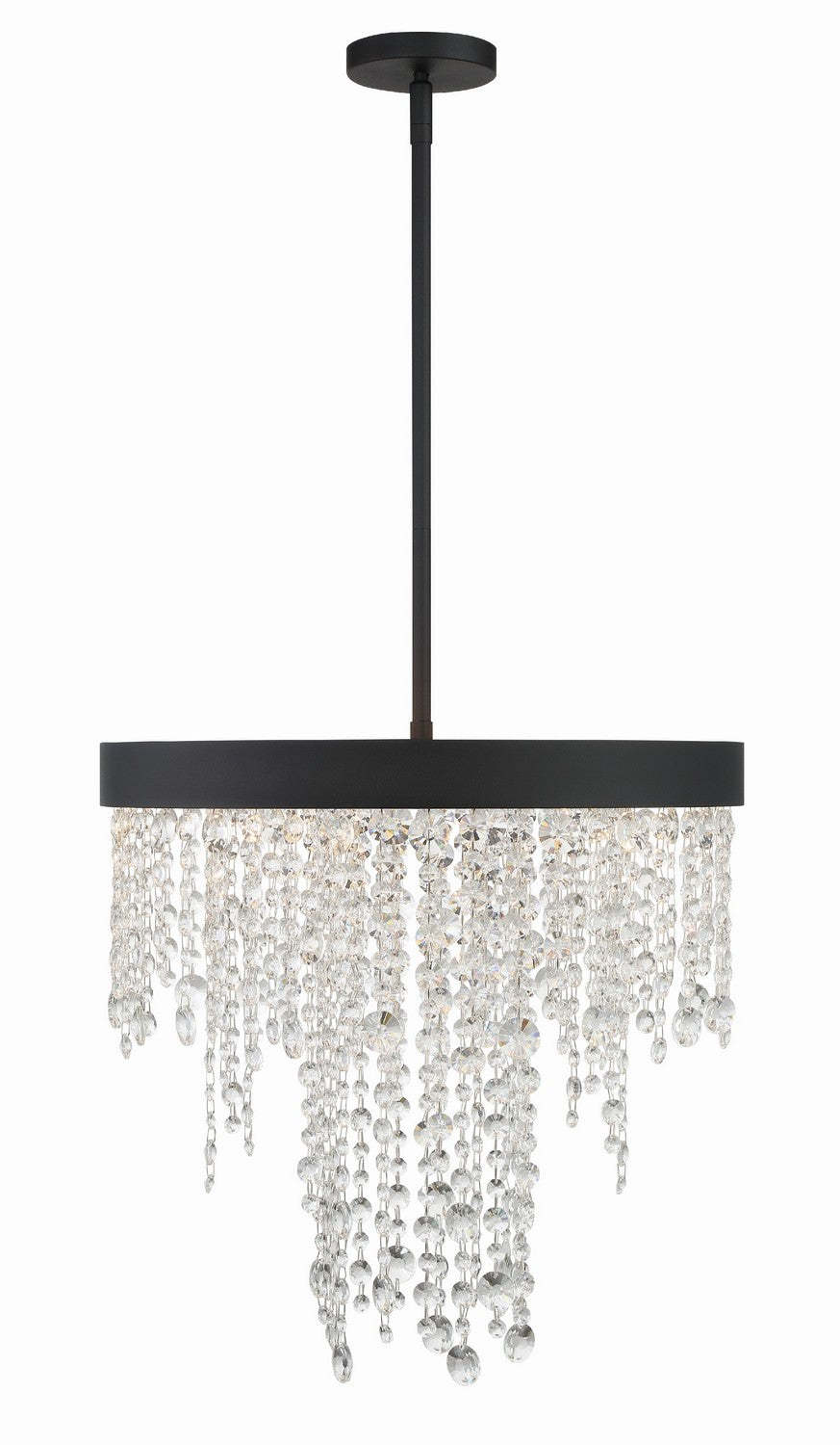 Layers of multi-sized faceted cut crystal strands are arranged on a simple, Black Forged or Antique Gold frame creates optimal sparkle. A perfect complement to any space. The Winham fixture is a sparkling masterpiece when placed as a focal point in a bedroom, dining room or living room.