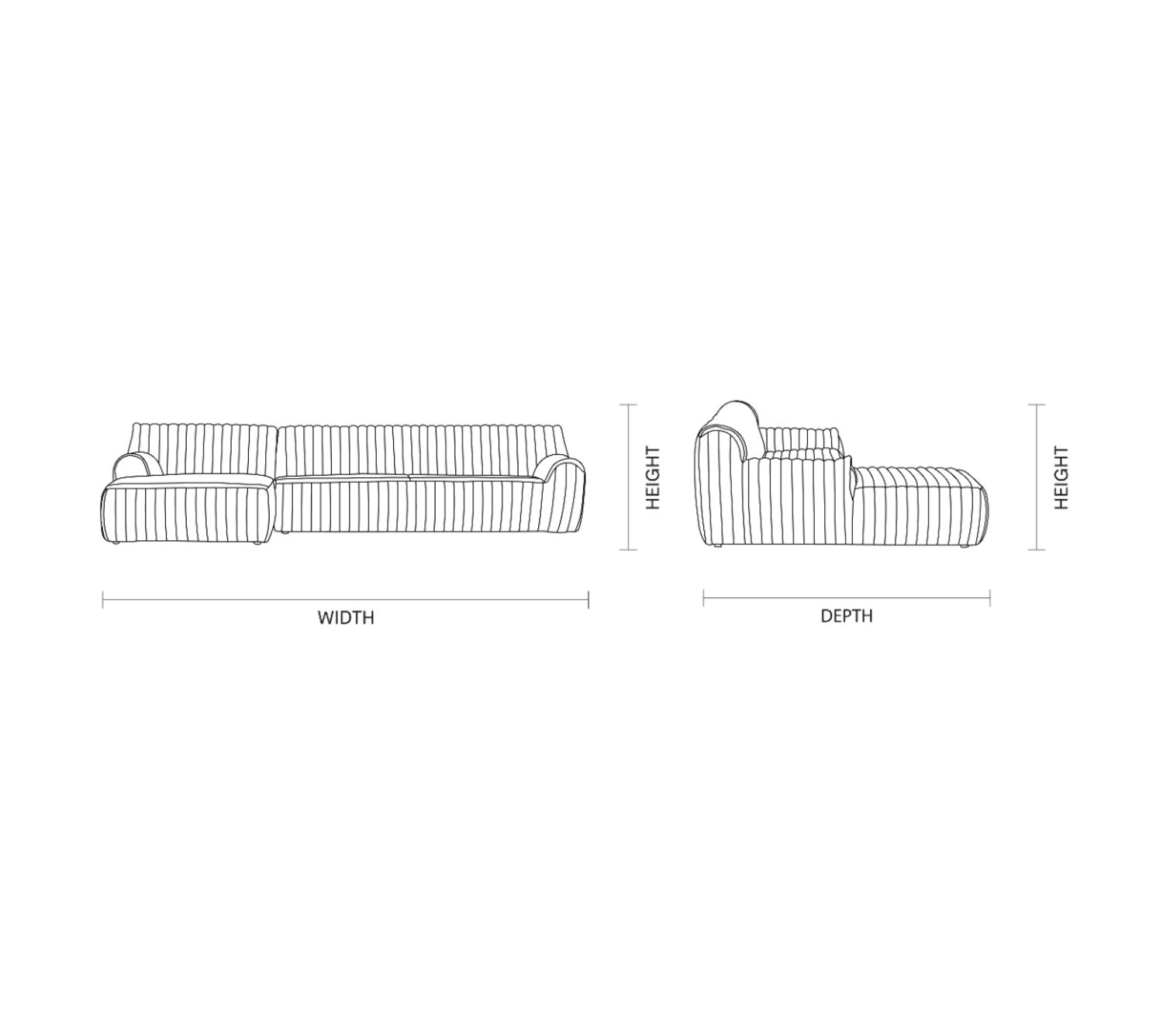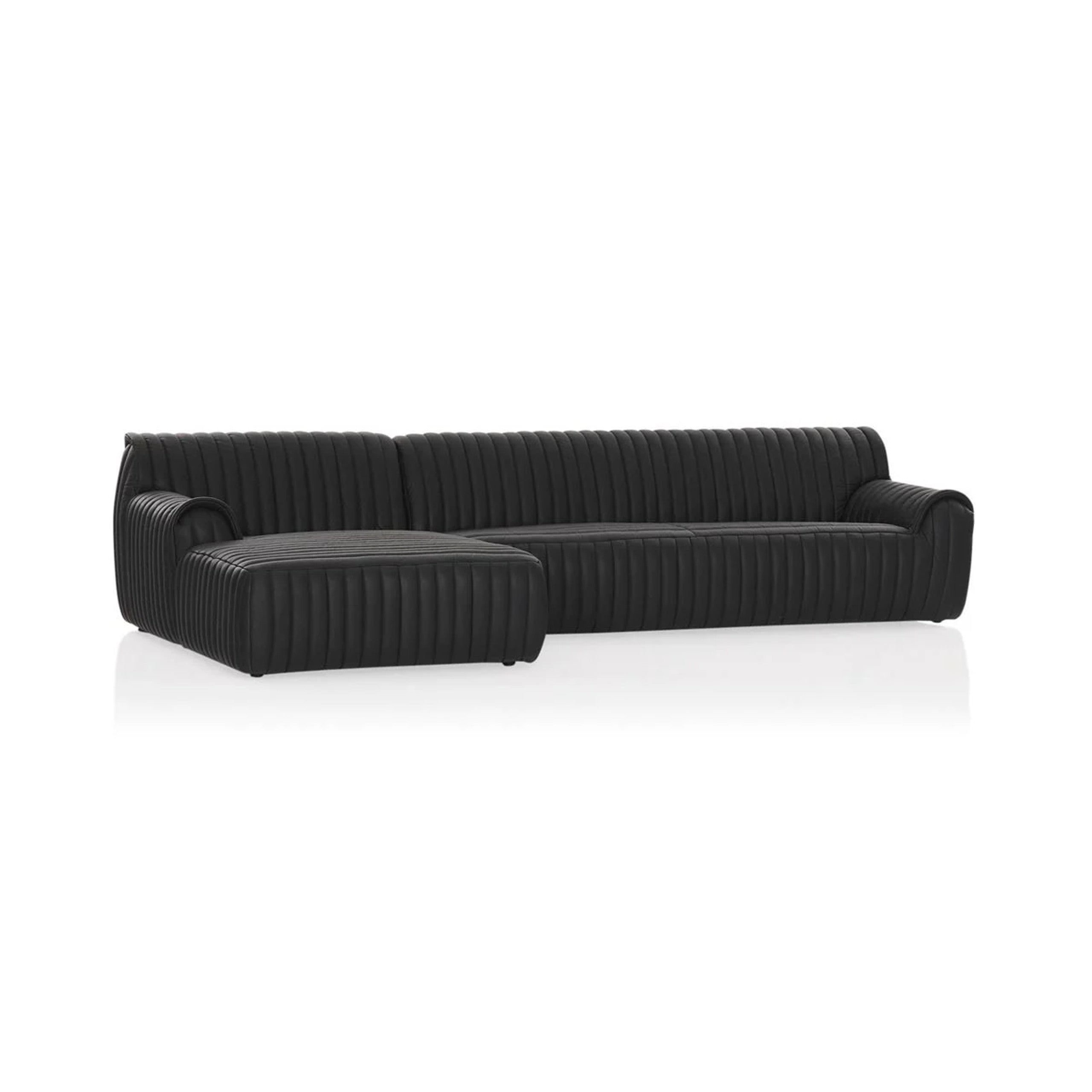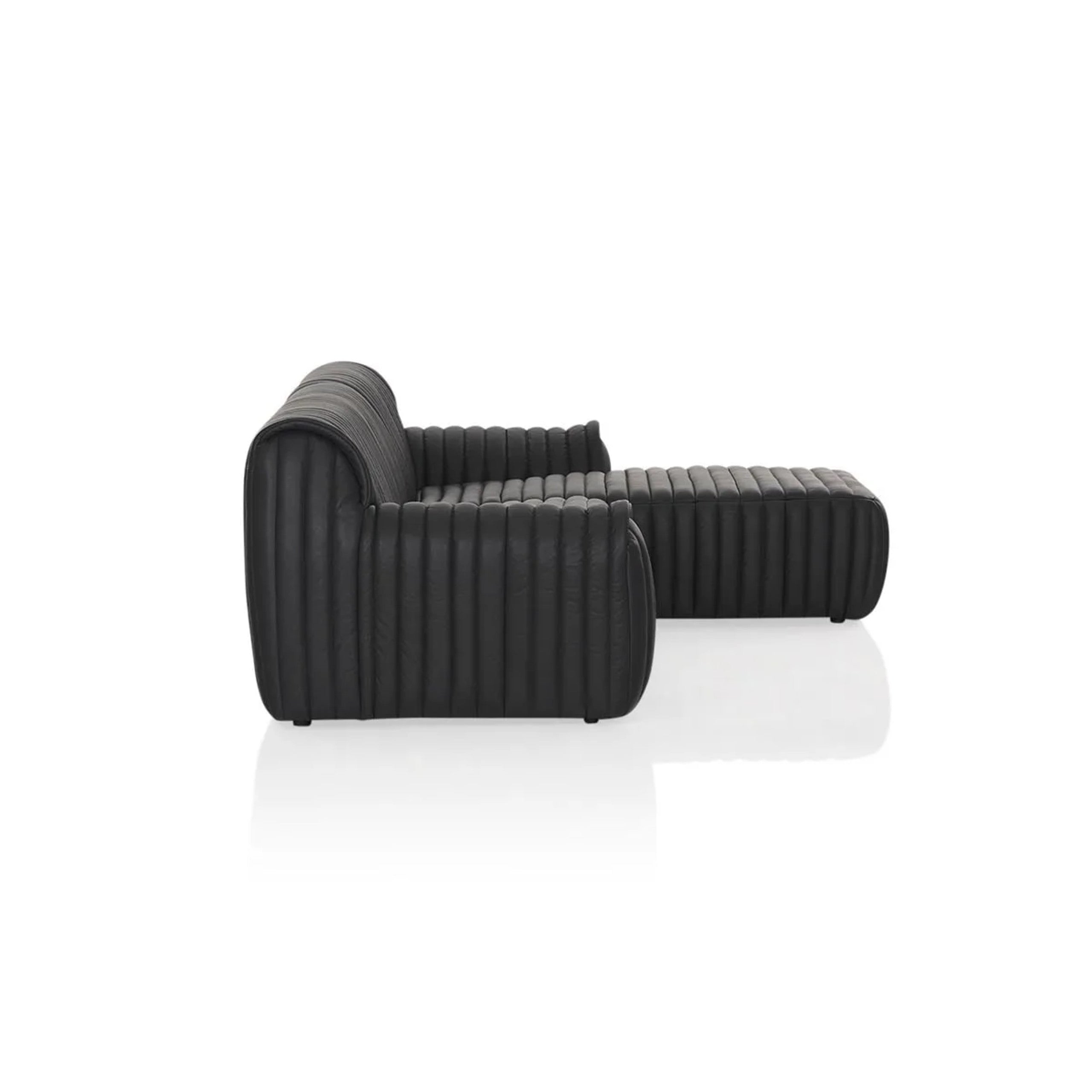 A sophisticated sofa with a vintage-inspired design crafted from luxurious leather.|The Aspen Channel Modular Sofa boasts a sophisticated vintage-inspired design characterised by a monolithic silhouette and intricate narrow channel detailing. It is tightly upholstered in top-grain luxurious leather. The frame is constructed from hardwood and plywood featuring webbing and sinuous springs for seat suspension. The comfortable cushion is crafted from polyester foam and polyester fiber. Able to be customised to suit your living space. Choose from a variety of luxurious upholstery options to complement your personal style. Chaise Only dimensions: W:1100 x D:1700 mm.