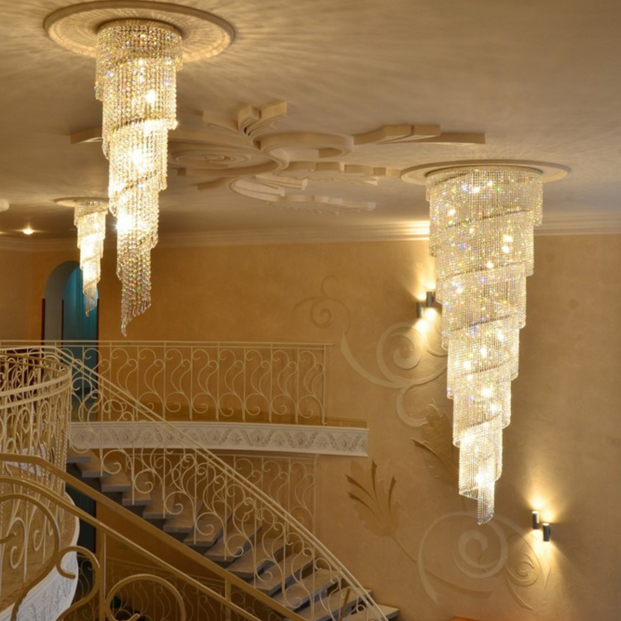 Babylon is one of our first spiral chandeliers and has already become a classic since then. While a lot of other manufacturers create a fake spiral shape, the Babylon features a true spiral shape and makes a wonderful impression in the interior, sparkling with its beauty in all directions.