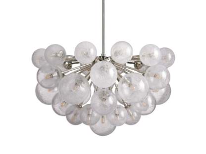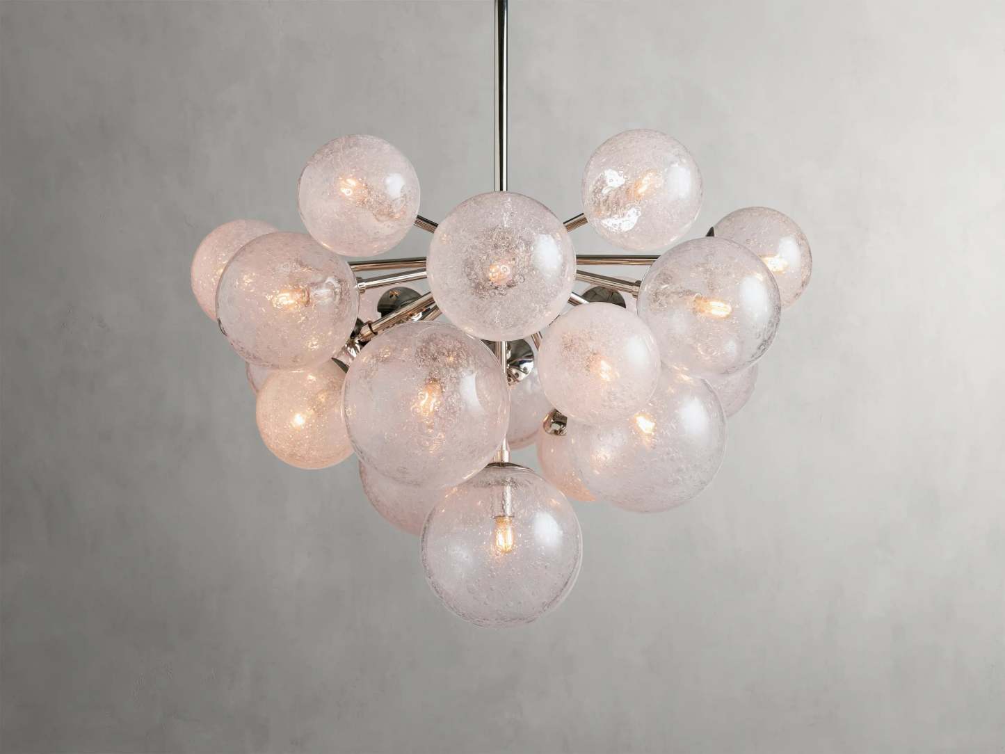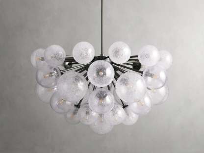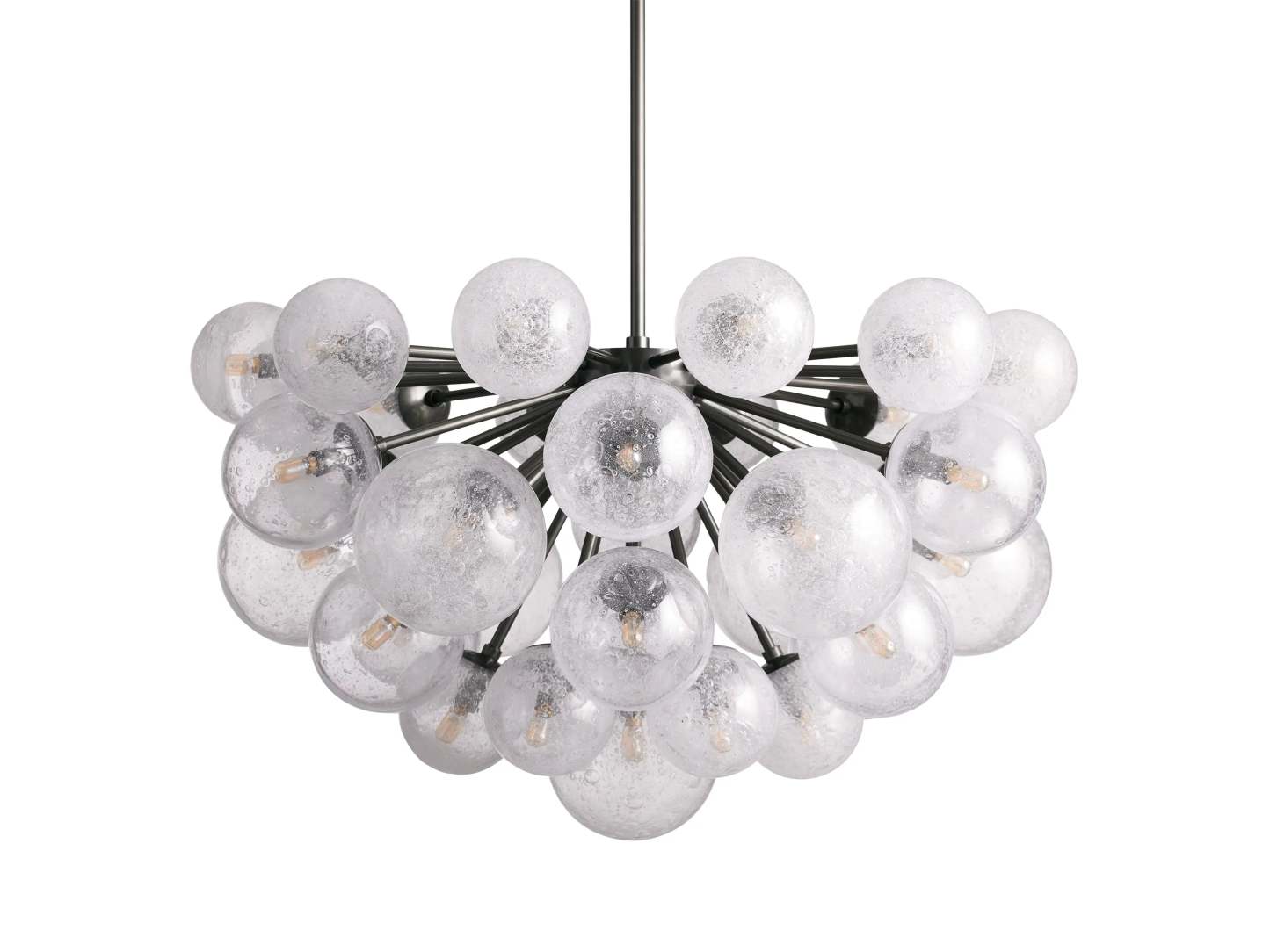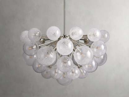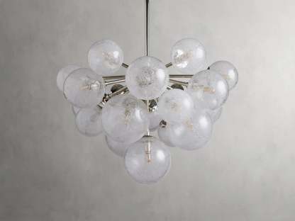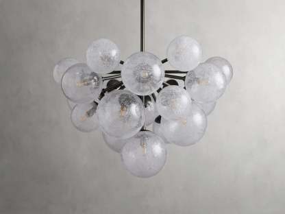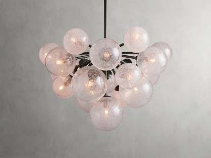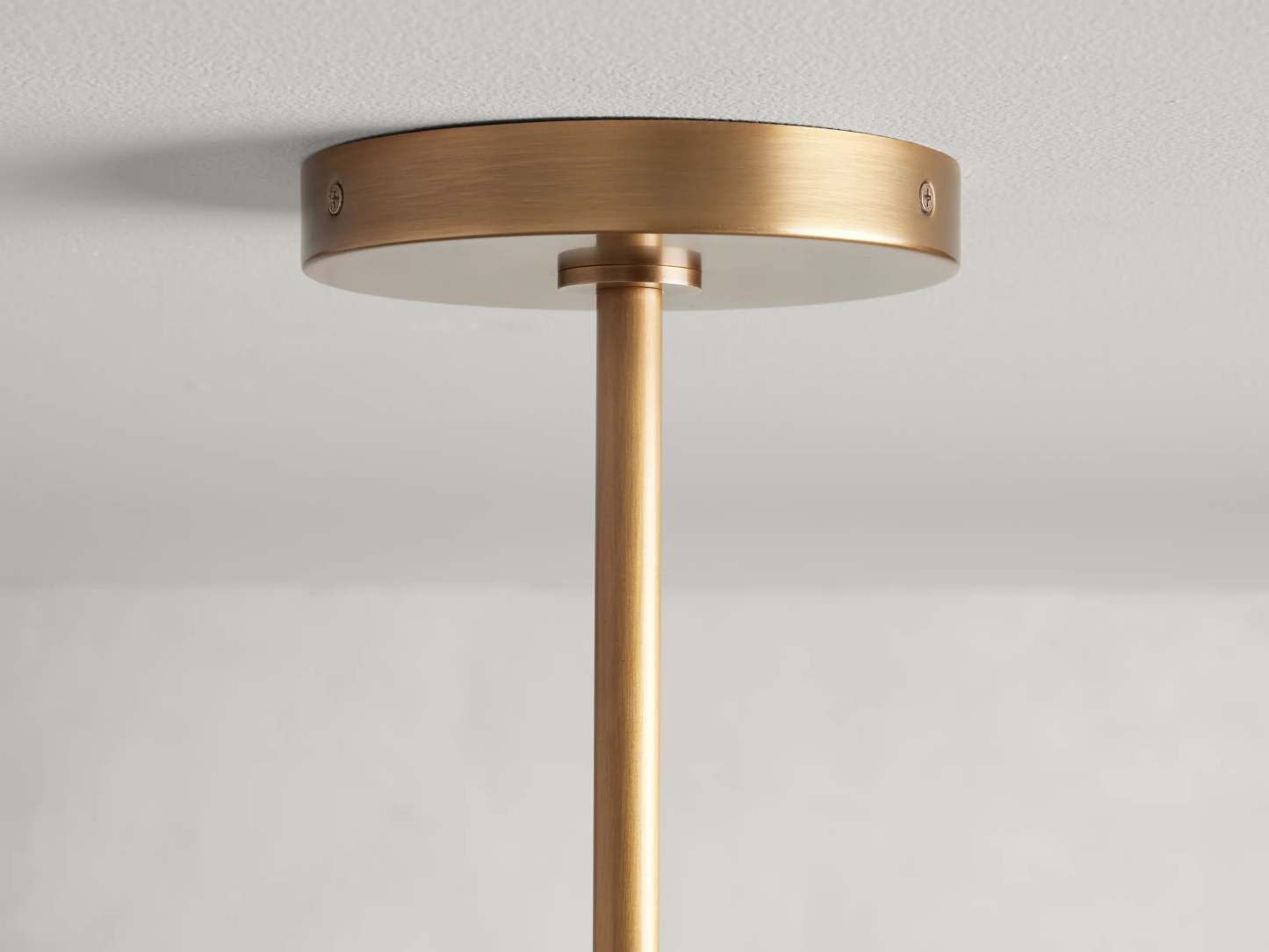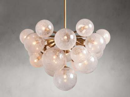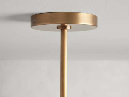 | Material | Burnished brass-finished steel and aluminum with hand-blown glass globes |