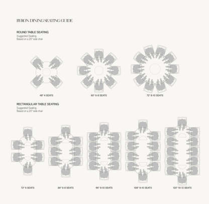 - 96" and 108" tables seat up to 10