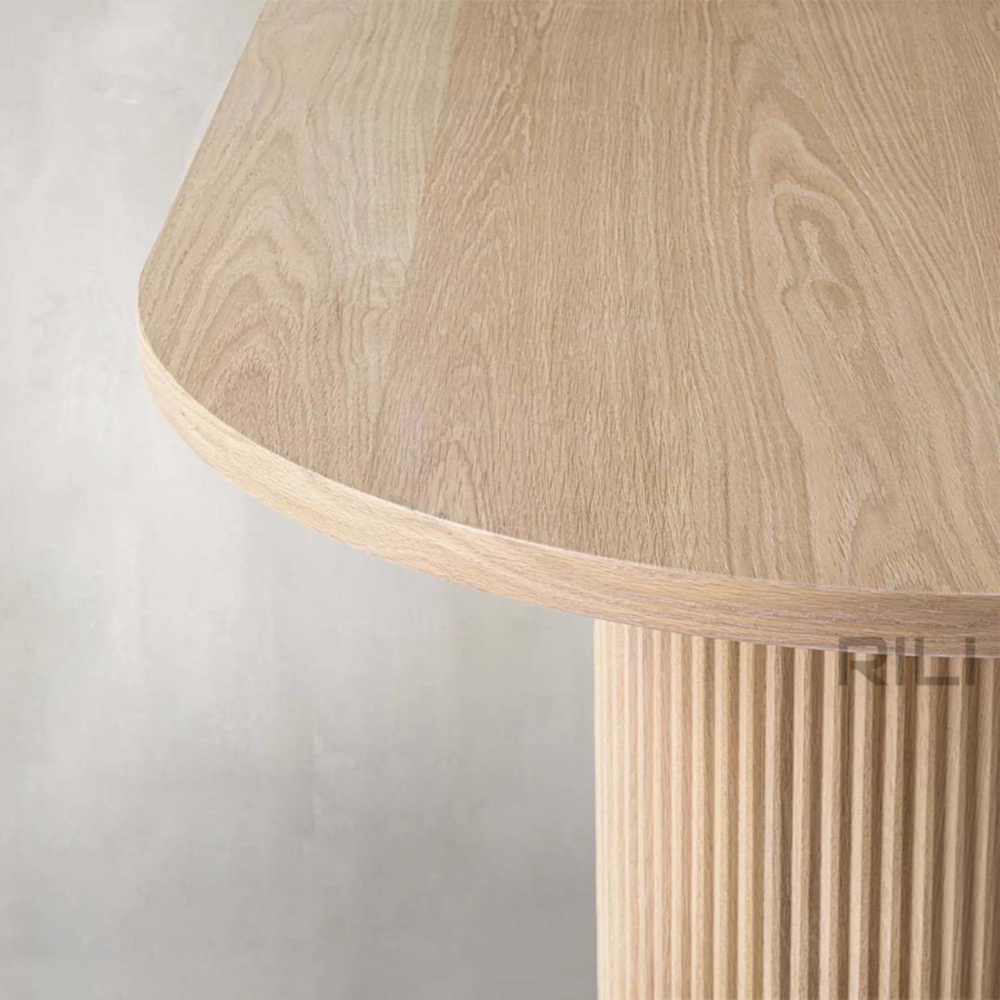 - Vertical surfaces feature solid oak reeding