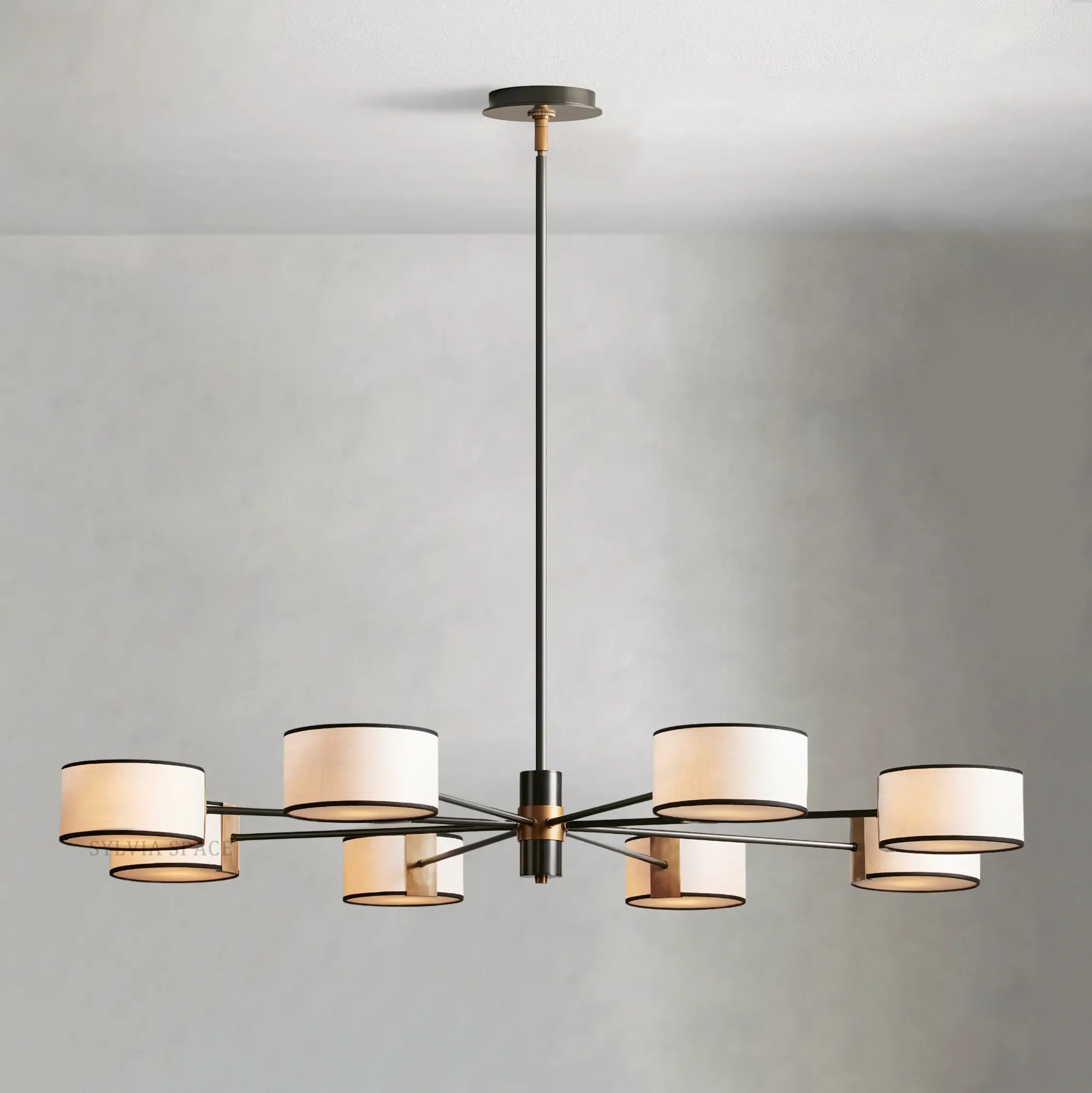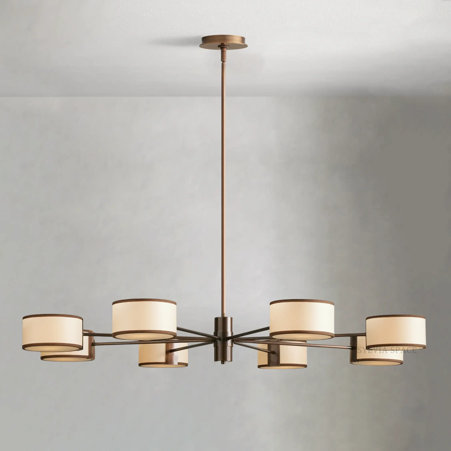 | 60" chandelier uses eight 60-watt max E26 bulbs (included). |