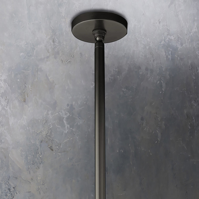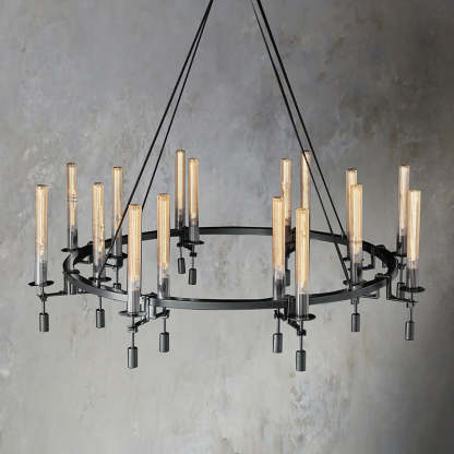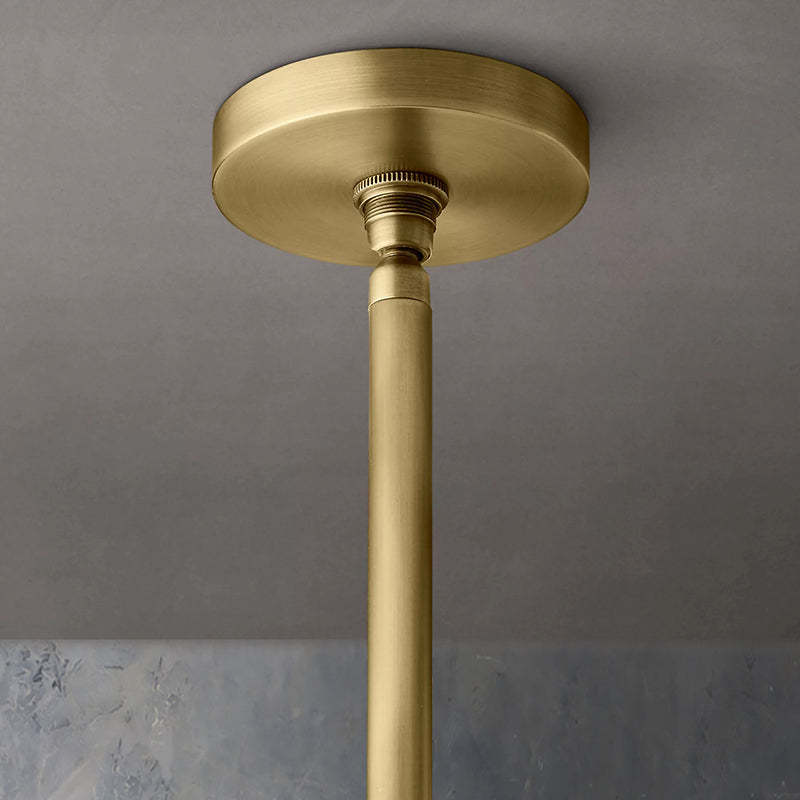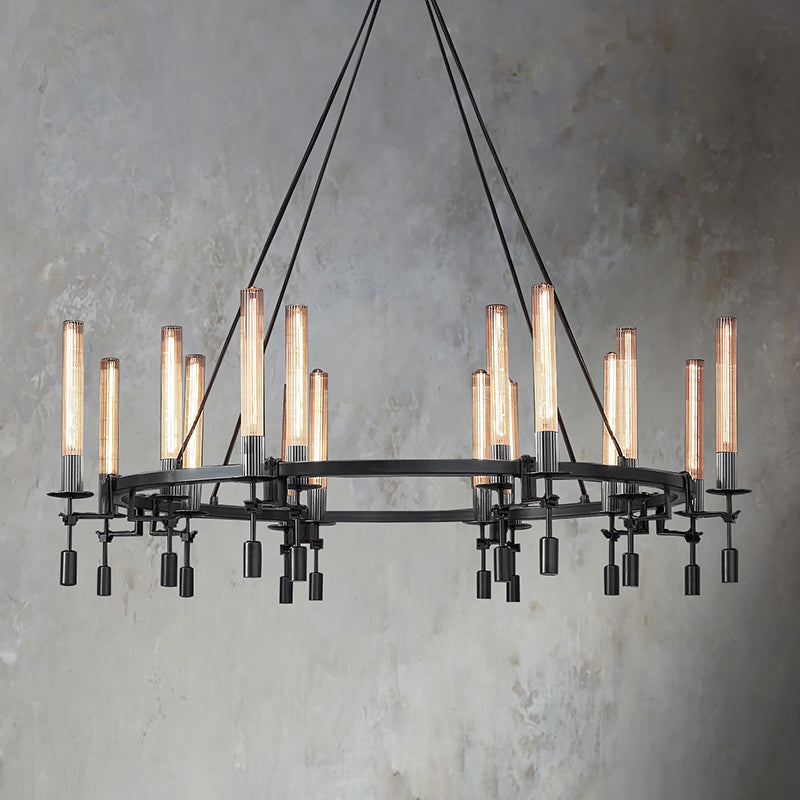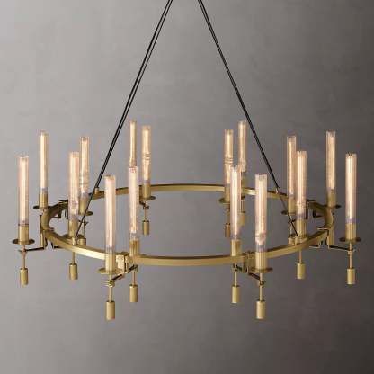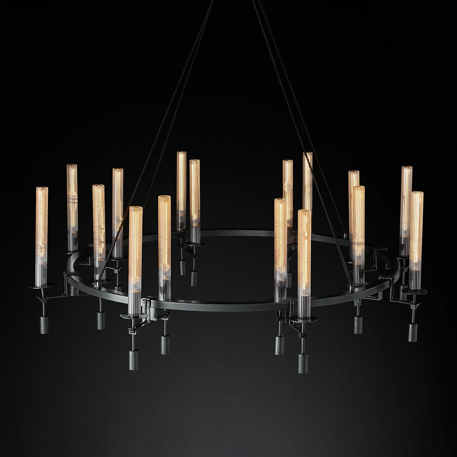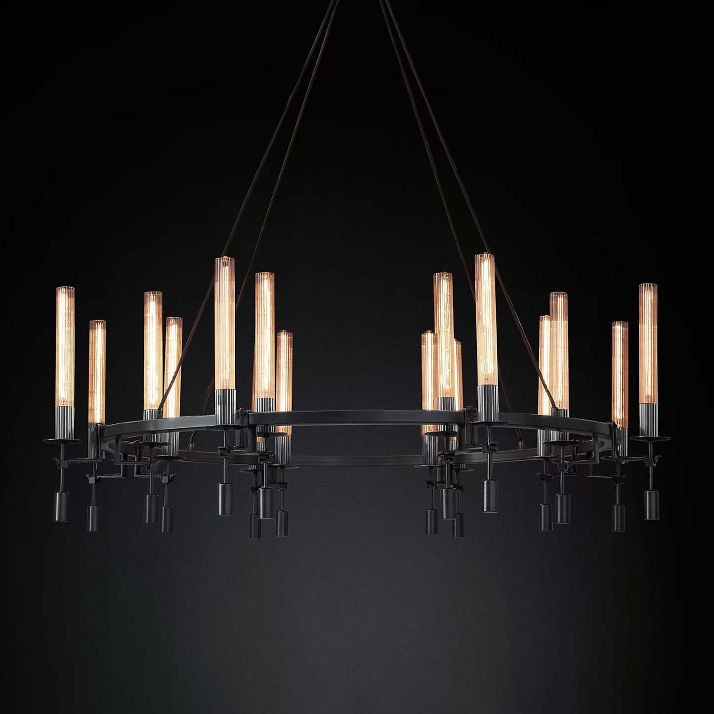 This chandelier is made of solid brass and hurricane made of corrugated borosilicate glass for durability and brilliance. Our fixture evokes French classicism. Made of solid brass, its minimalist construction features an Edison bulb set in cylindrical ribbed glass that shines like a candle.