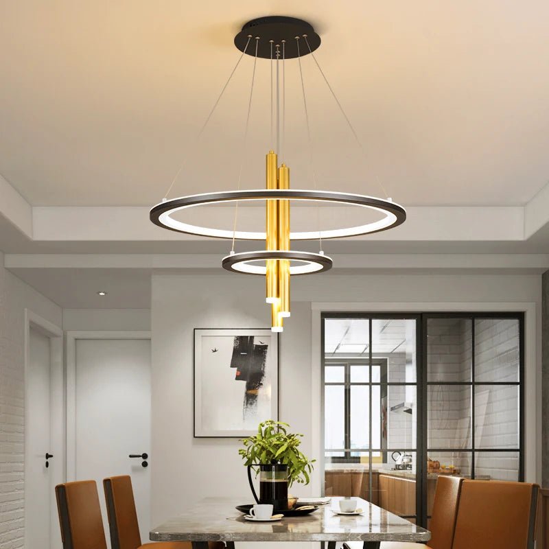 Experience modern and bold lighting with the Hogar Ring Chandelier. Elevate your dining room with this smart pendant light, designed for those who love taking risks. Create a daring and inspiring atmosphere with this sleek chandelier, perfect for any modern home.
