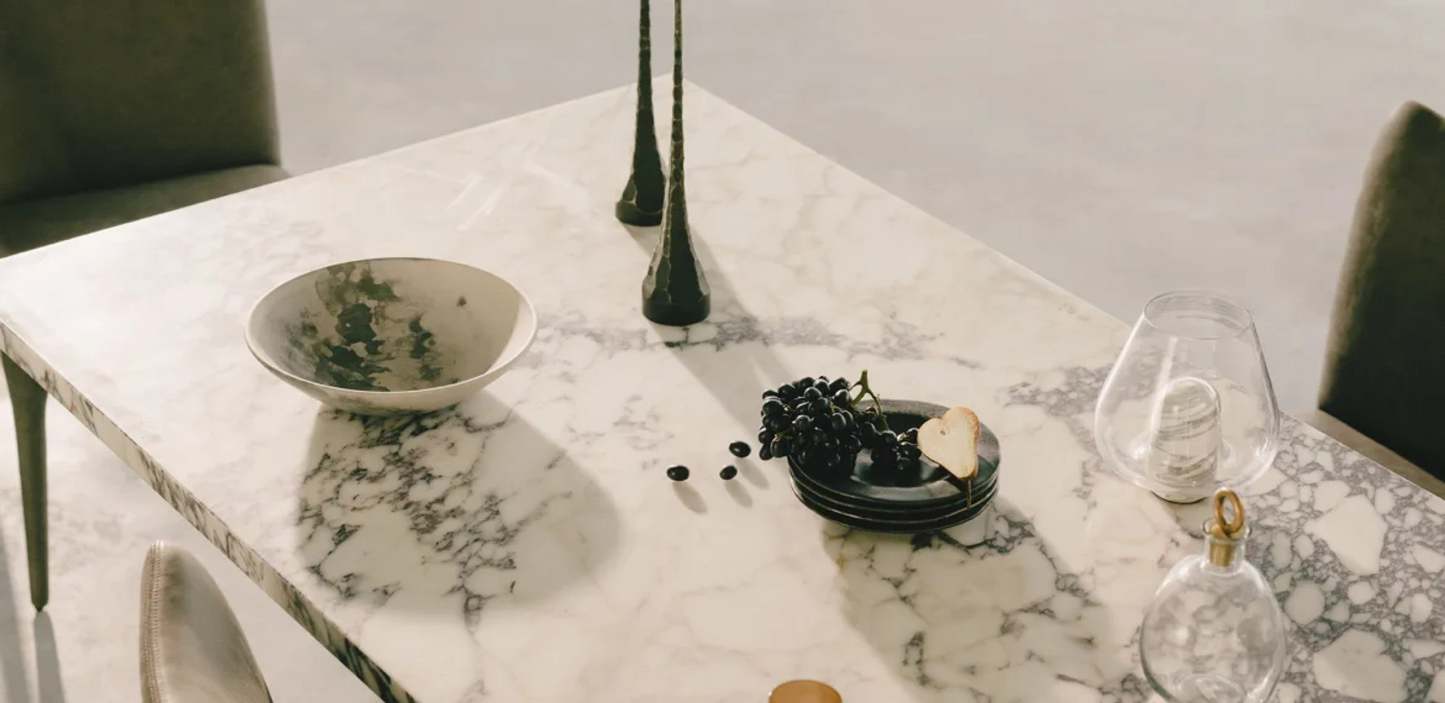 An impressive dining table certain to make a lasting impression.|Crafted to serve as an alluring centrepiece, the Khodier Dining Table stands out for its exquisite aesthetics, boasting a Calacatta Viola marble tabletop elegantly upheld by a frame crafted from plywood with an oak veneer finish. The fusion of marble and oak veneer captures the essence of natural beauty. With its generous proportions, this table is ideal for hosting gatherings. Marble is a natural material, and Coco Republic advises that distinctive variations in veining, markings and colours can be expected as standard, and do not compromise the integrity of the stone. Each piece is one-of-a-kind.