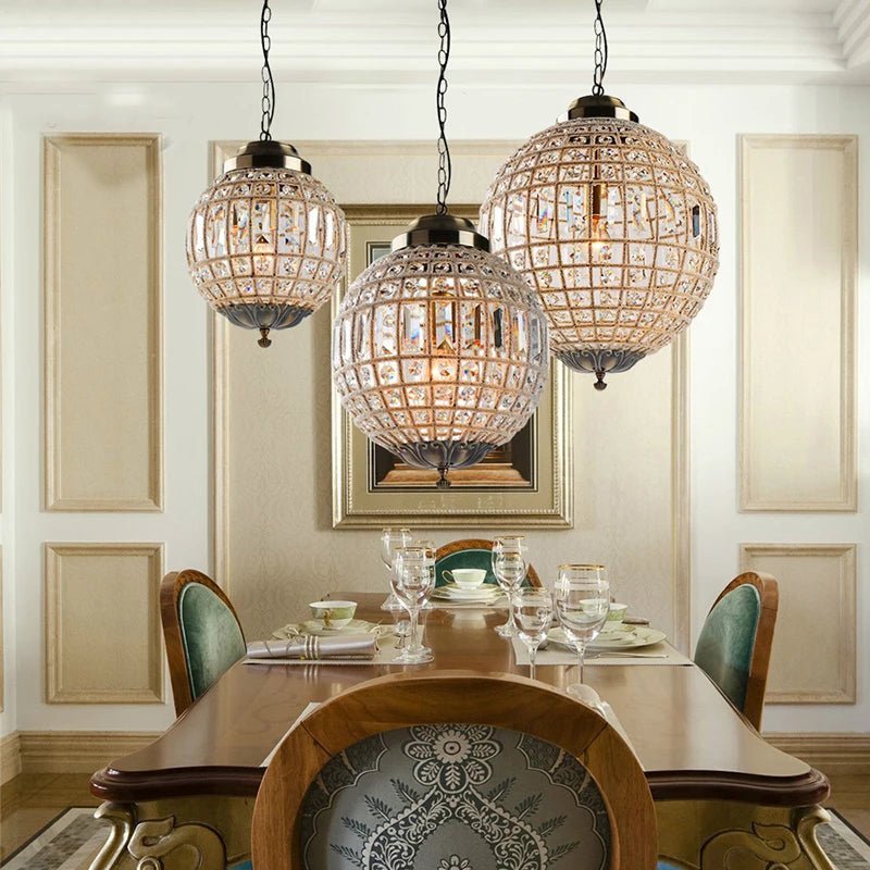 Experience the opulence of a Medieval French Court with our Mahkama Crystal Chandelier. Made with K9 crystal, this retro light brings a touch of luxury to any living room or bedroom. With LED technology, it provides both stunning decorative lighting and energy-saving benefits. Elevate your space with this globe chandelier.