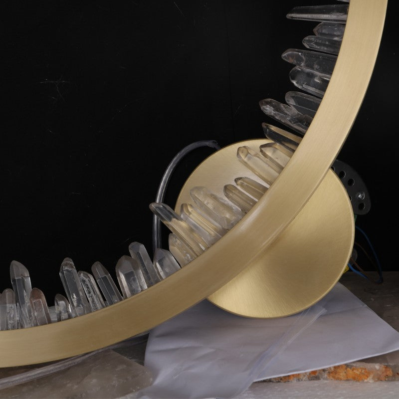 This crystal sconce features an exquisite Geode Quartz crystal, along with an LED light that delivers a warm 3000K glow. The brass metal frame adds an air of class and sophistication, while the crystal provides a stunning and natural element to any indoor setting.