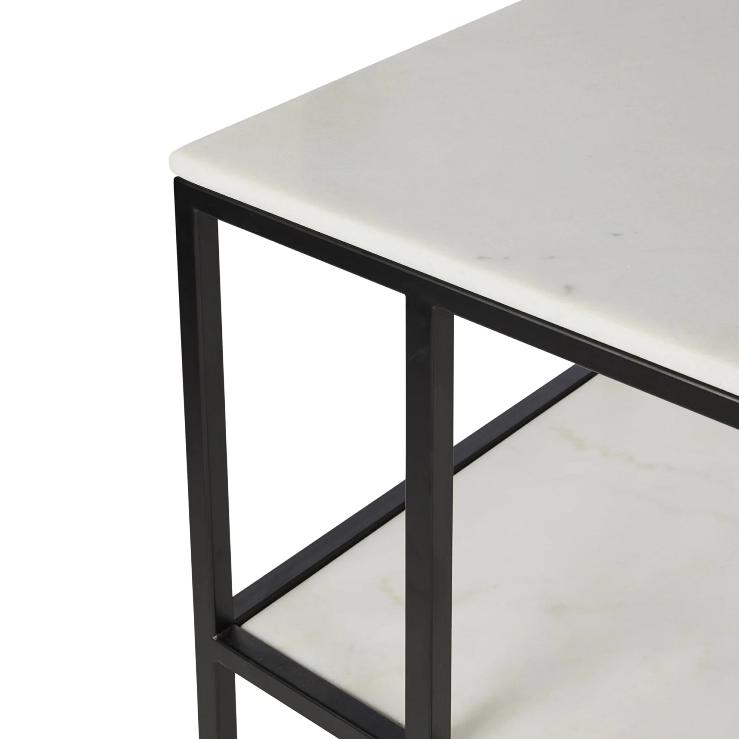 A contemporary honed marble desk perfect to pair with any style.|This contemporary and classic shape is ideal to pair back with any setting. The versatile Nomad Desk features white marble with grey and natural tones and a solid steel architectural base. A versatile aesthetic for any room. Marble is a natural material and Coco Republic advises that distinctive variations in veining markings and colours can be expected as standard and do not compromise the integrity of the stone. Each piece is one-of-a-kind.