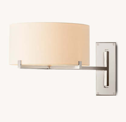 - Fitted with a white linen drum shade