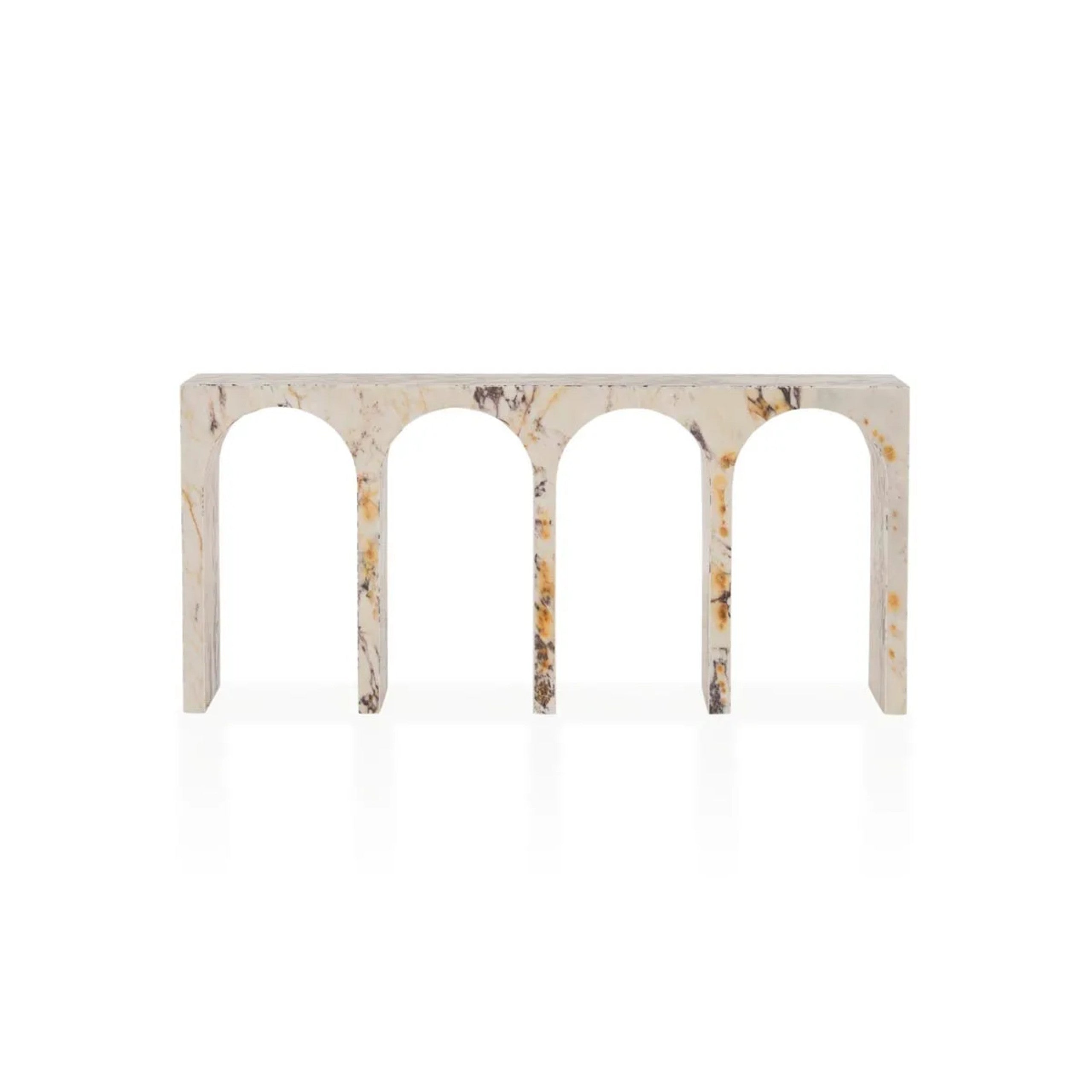 The Pegasus Calacatta Marble Console demands to be seen. This statement piece is exemplified by the beauty of the metamorphic rock that is ancient Calacatta marble. Born millions of years ago when limestone compounds with the elements this piece will add instant character and aesthetic solidity to any interior.Marble is a natural material and Coco Republic advises that distinctive variations in veining markings and colours can be expected as standard and do not compromise the integrity of the stone. Each piece is one-of-a-kind.