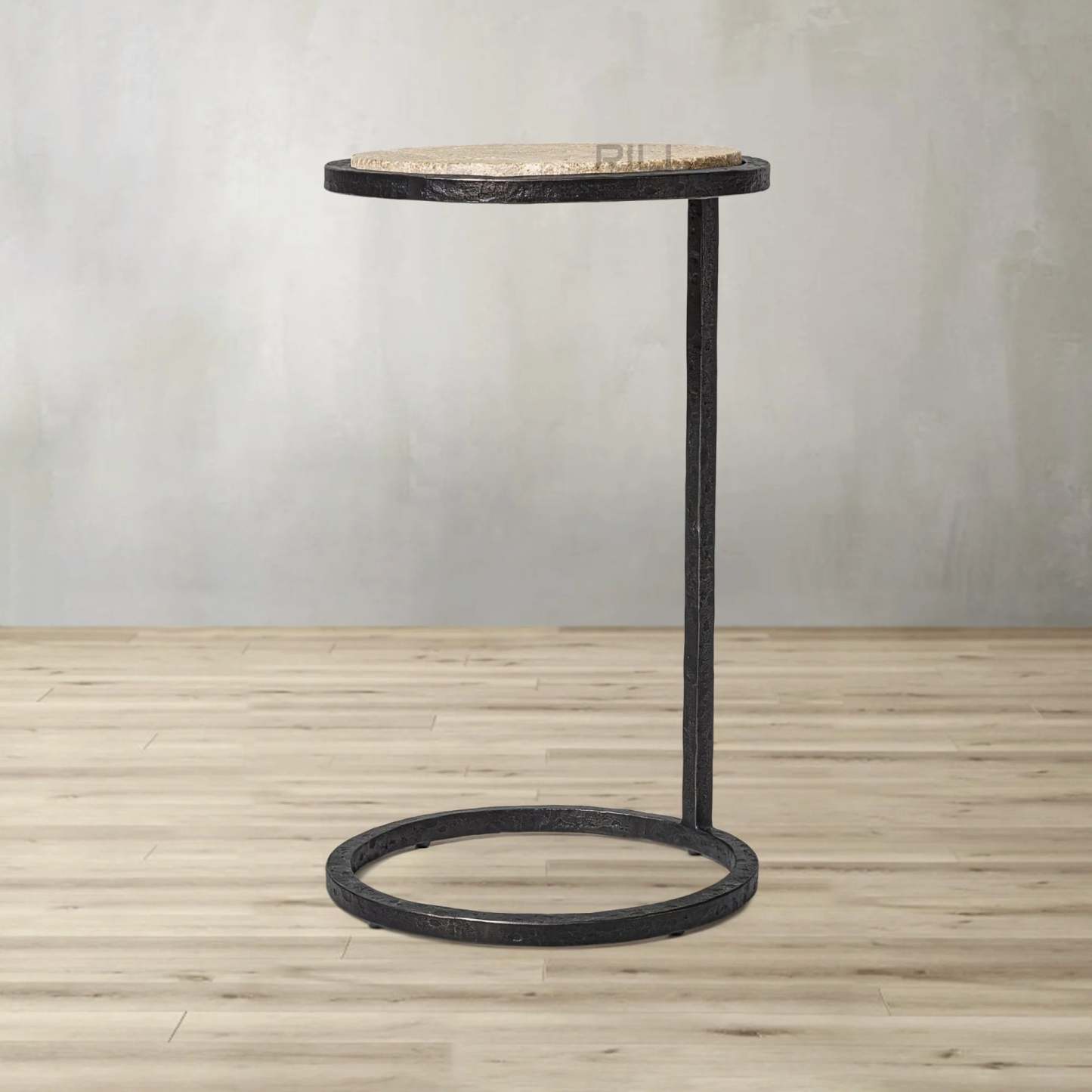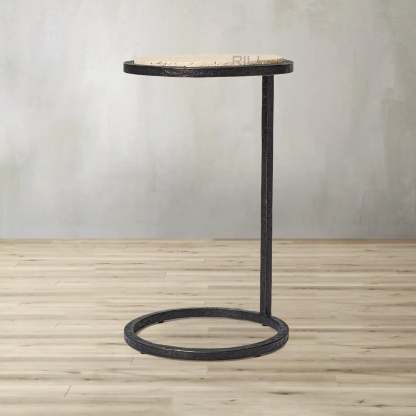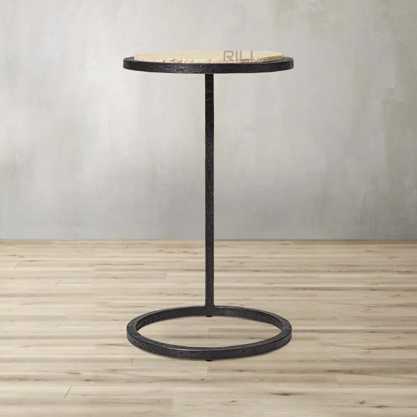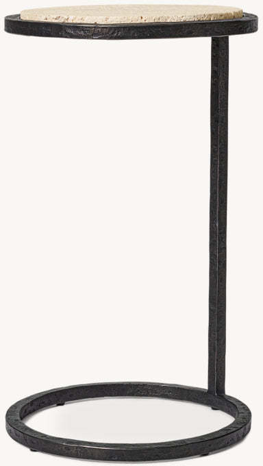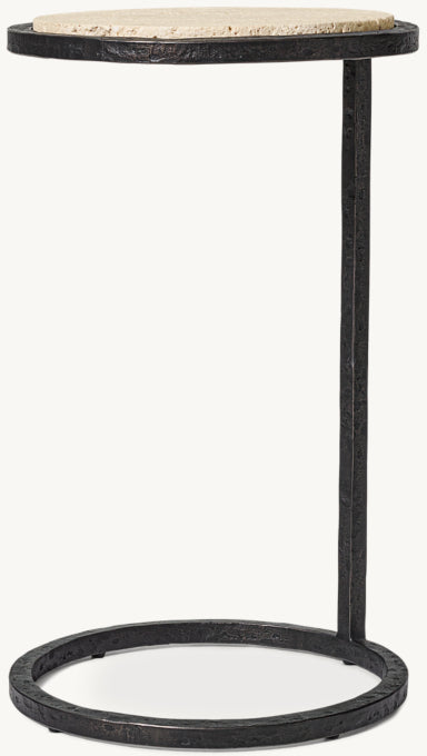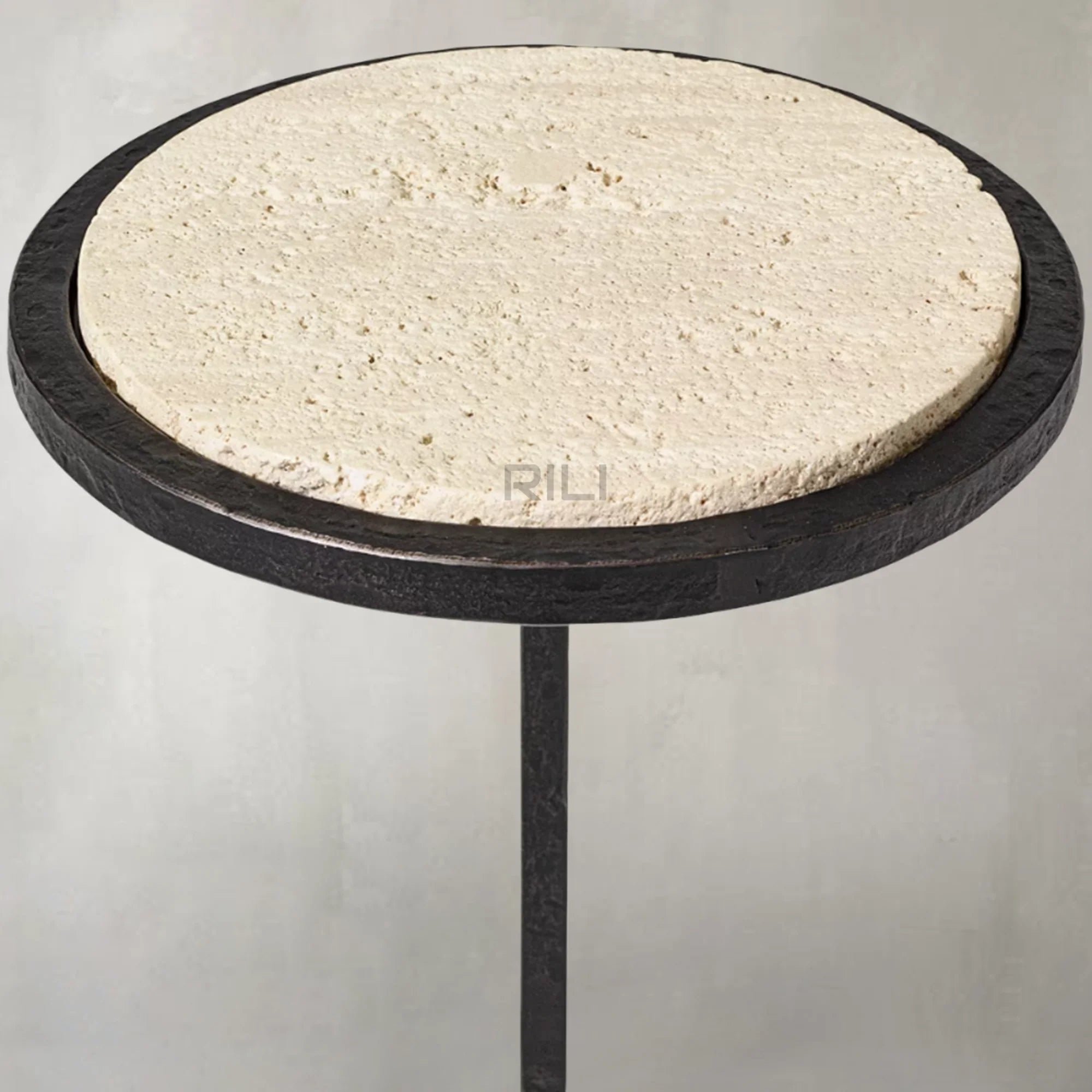 - Tabletop is handcrafted of 1"-thick marble or vein-cut Italian travertine over an engineered wood core