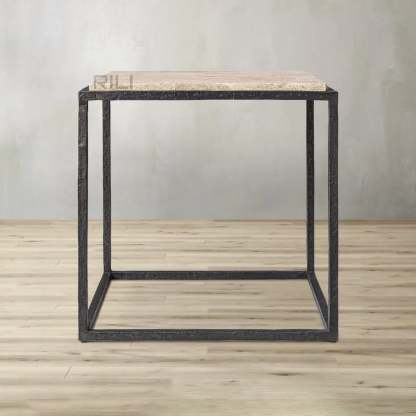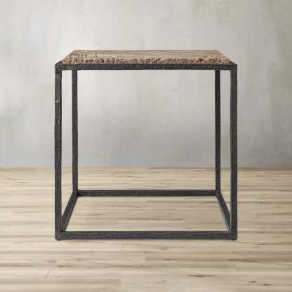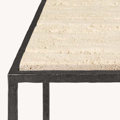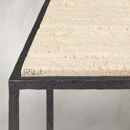 - Tabletop is handcrafted of 1"-thick marble or vein-cut Italian travertine over an engineered wood core