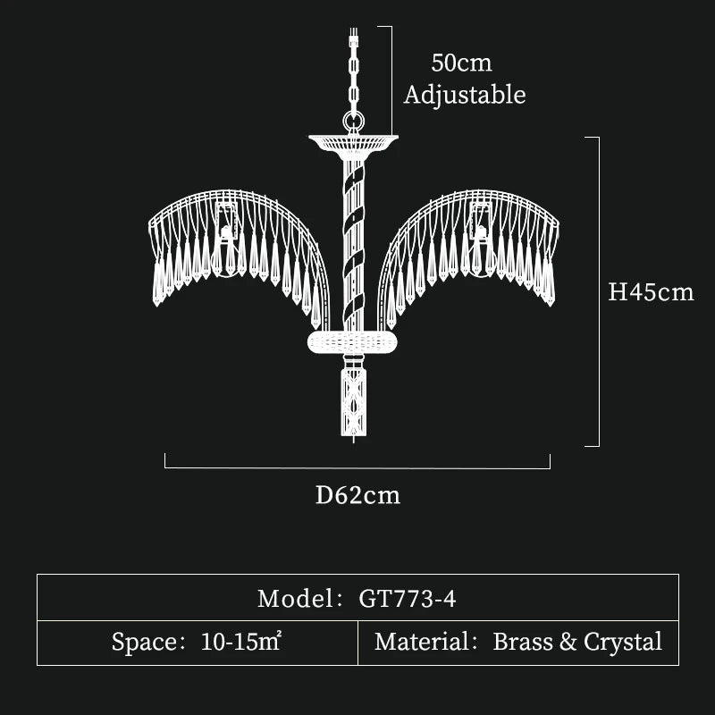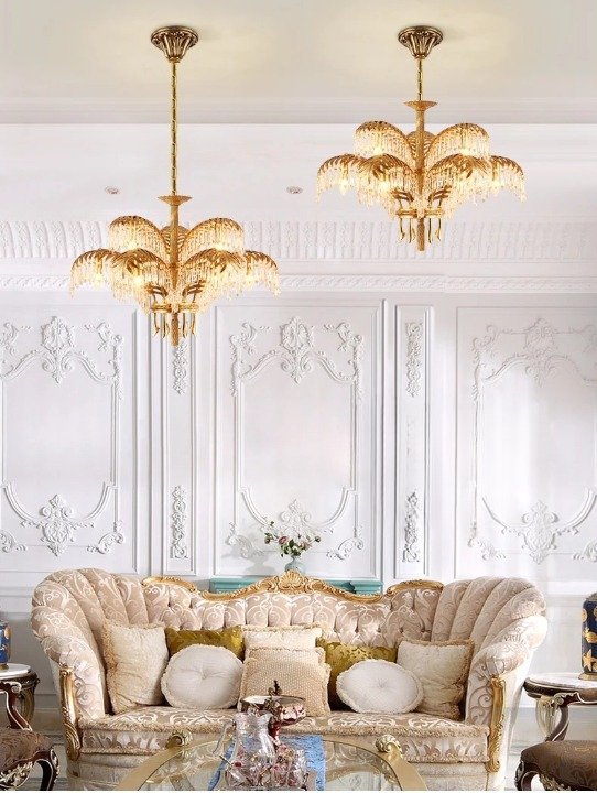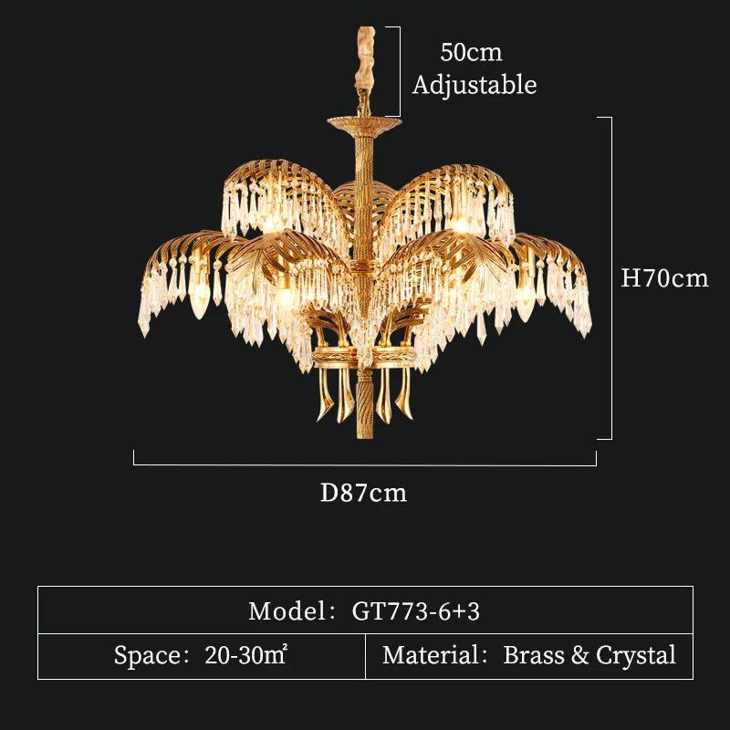 The Taraf Crystal Chandelier is a perfect blend of European Rococo and French Baroque design, featuring exquisite brass details and shimmering crystal lamps. Add a touch of luxury and elegance to any living room or dining room with this classic and vintage chandelier.