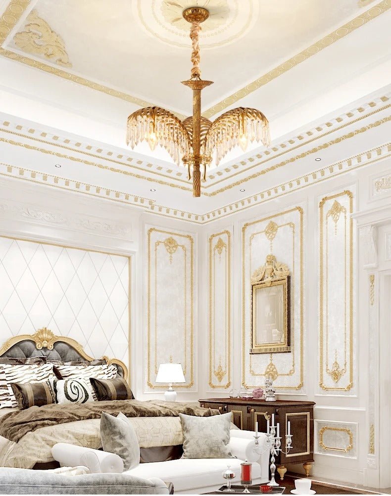 - Shimmering crystal lamps and intricate brass details.