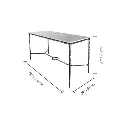 Tabletop: Crafted from 1"-thick Italian marble over a sturdy wood core. The marble is honed, sealed, and finished with a quarter-round edge for a smooth, refined look.
