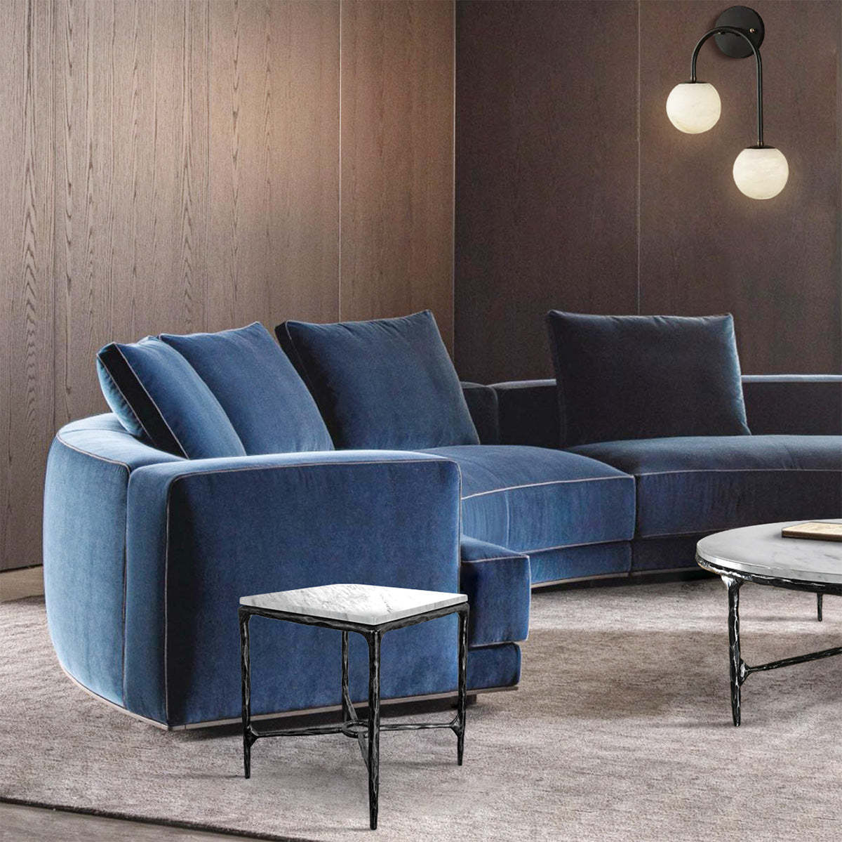 Tabletop: Crafted from 1"-thick Italian marble over a durable wood core. The marble top is honed, sealed, and finished with a quarter-round edge for a smooth and refined appearance.