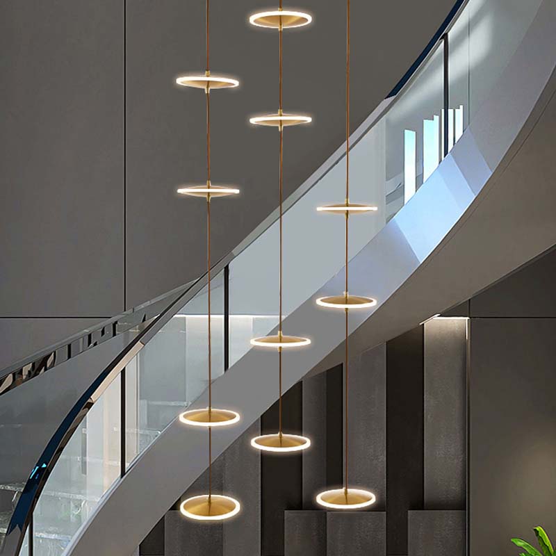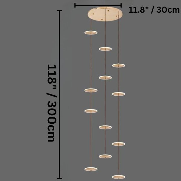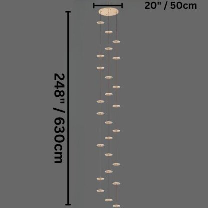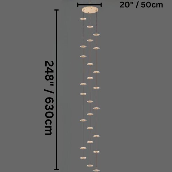Introducing a stunning Themis Round Chandelier designed for staircases. Its luxurious gold finish and Nordic loft-inspired design create a captivating visual appeal. With energy-efficient LED lights and a mesmerizing crystal arrangement, this fixture adds elegance and ample lighting to indoor spaces, making it a perfect choice for a sophisticated ambiance.