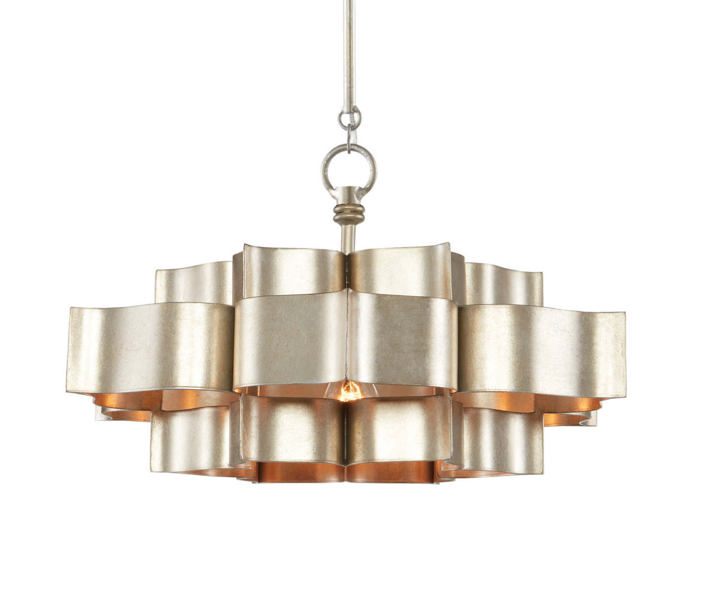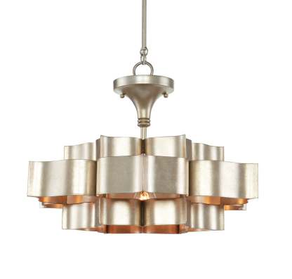 The Grand Lotus Silver Small Chandelier receives its majestic good looks from a combination of stunning workmanship and antique contemporary silver leaf finish. The silver chandelier is skillfully fashioned from wrought iron. We offer this fixture in a number of styles and finishes.